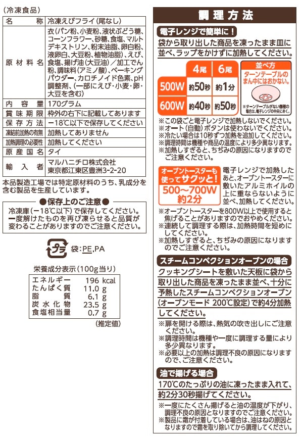 [7袋]マルハニチロ レンジでプリッ旨! えびフライ 170g | 電子レンジでお手軽調理!パクパクッとまるごと食べられるひとくちサイズの油調済み「尾無しえびフライ」です!