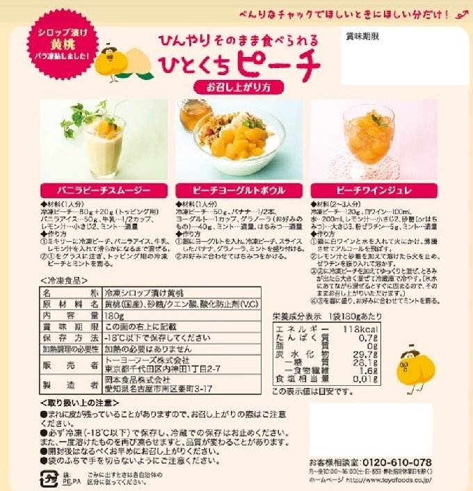 [12袋]トーヨーフーズ 国産黄桃 ひとくちピーチ 180g | べんりなチャック付でほしいときにほしい分だけ