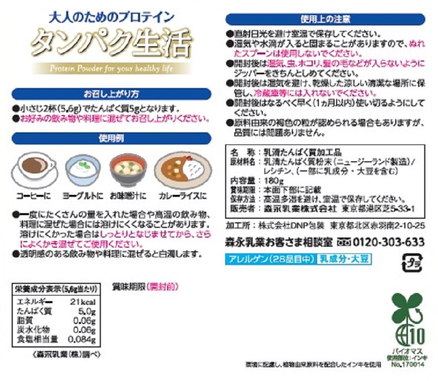 溶かしやすく、ほとんど無味無臭のため、お好みの飲み物や料理に加えることで、日常生活の中で手軽にたんぱく質を摂取できます。