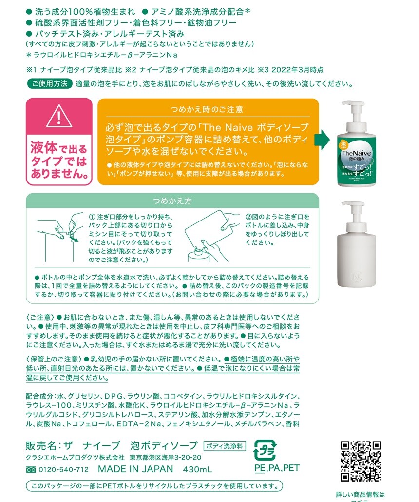 - The Naive ボディソープ 泡タイプ 詰替用 430mL