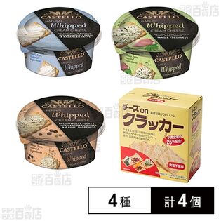 - [冷蔵]チェスコ キャステロ ホイップクリームチーズ 3種(プレーン/ガーリック/ペッパー)+チーズonクラッカー 4種計4個セット