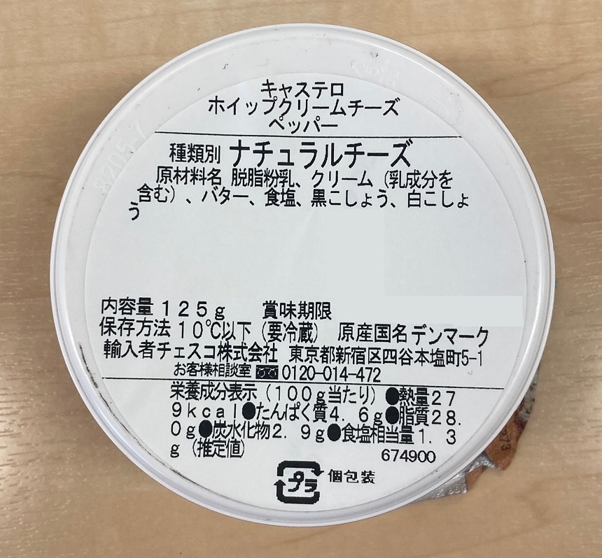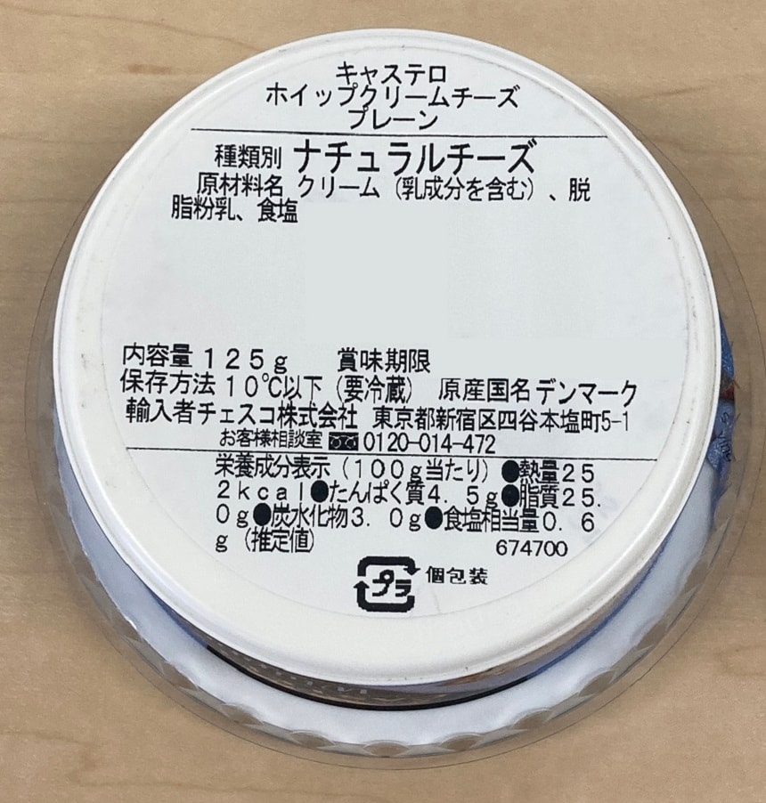 - ・キャステロ ホイップクリームチーズ プレーン 125g×1個