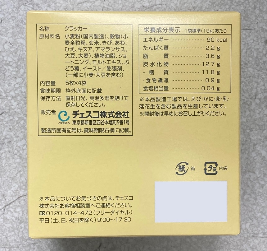 小麦を主原料に8種類の穀物を使用したサクサク食感のクラッカーです。