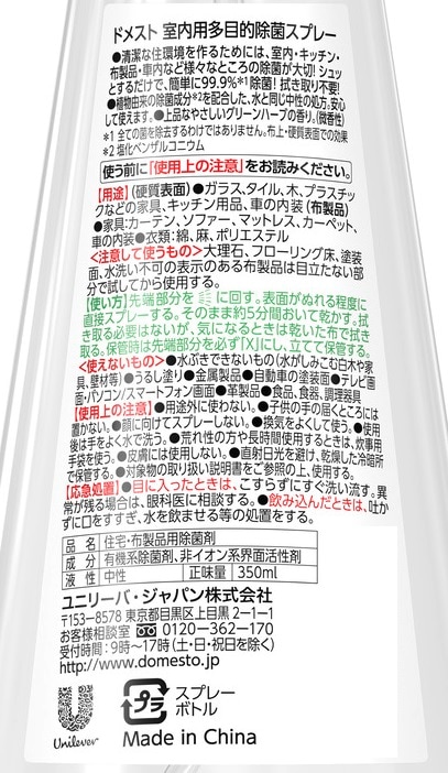 【ドメスト 室内用多目的除菌スプレー 本体 350ml】