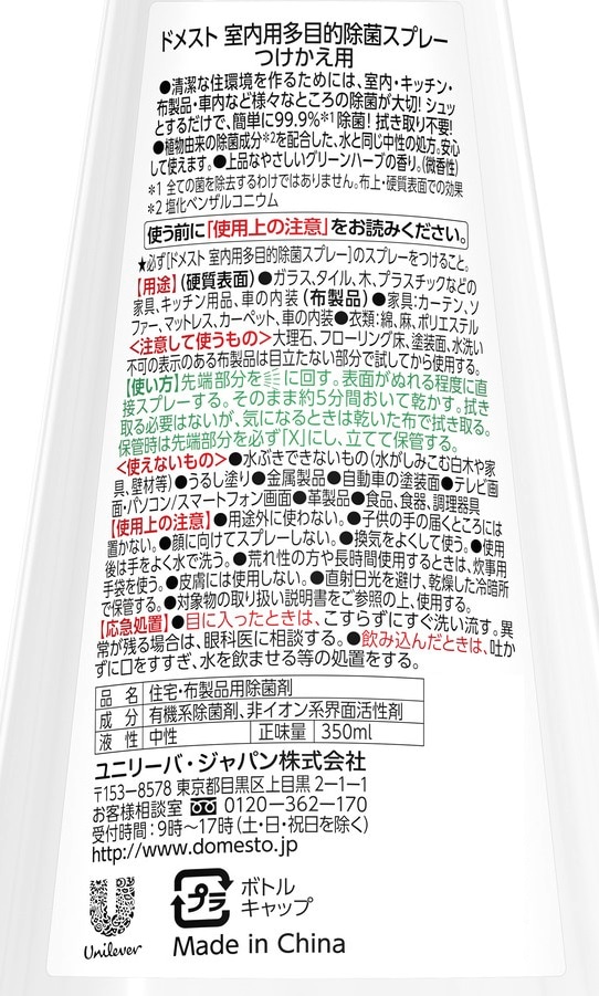 【ドメスト 室内用多目的除菌スプレー つけかえ用 350ml】