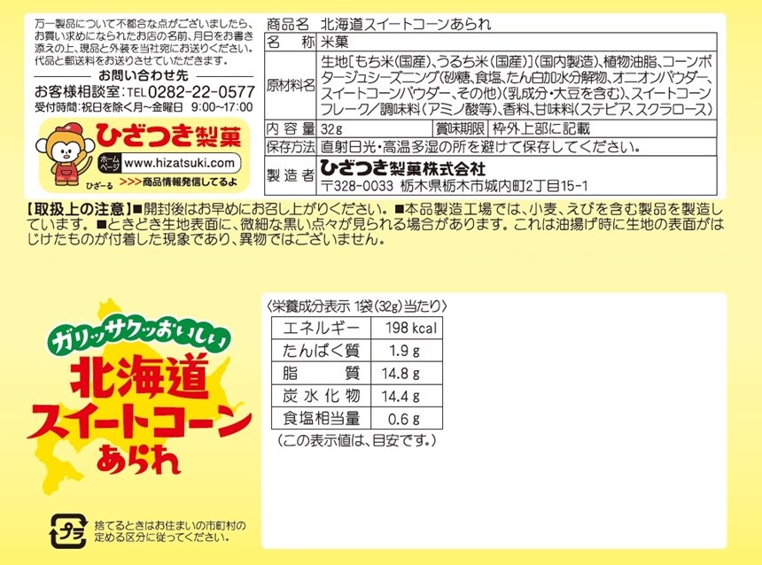 - 北海道スイートコーンあられ 32g