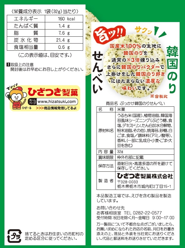 ・ぶっかけ韓国のりせんべい 32g×12袋