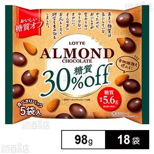 [18袋]ロッテ 糖質オフアーモンドチョコレートシェアパック 98g(5袋入) | ミルクとマカダミアペーストを練り込んだ風味豊かなチョコと、カリッとローストしたアーモンドを楽しめる