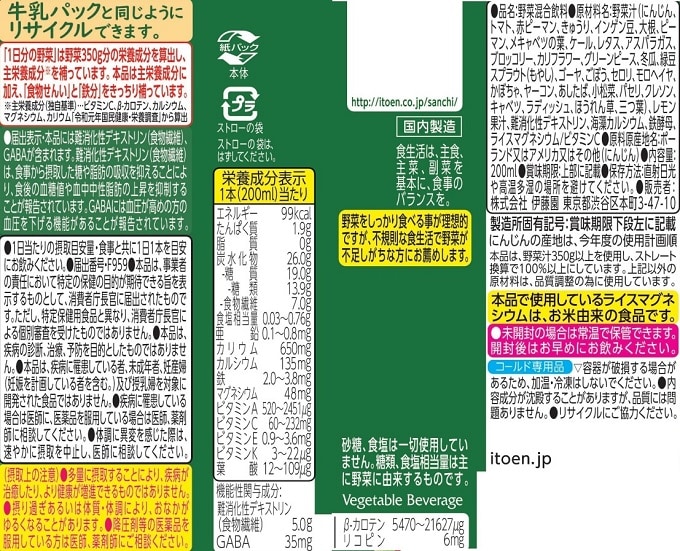 ■1日摂取目安量: 1日1本(200ml)を目安に、食事と共にお飲みください。