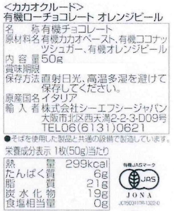 - カカオクルード 有機ローチョコレート オレンジピール 50g