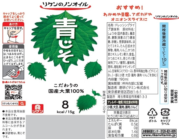 ・リケン リケンのノンオイル 青じそ 190ml×6本