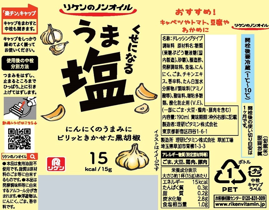 ・リケン リケンのノンオイル くせになるうま塩 190ml×6本