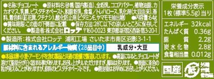 - プレミアムガーナショコラカレ<ピスターシュ> 64g