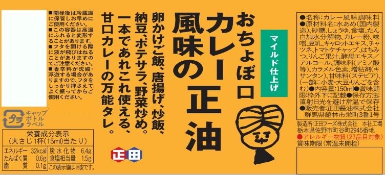 本醸造醤油をベースにリンゴやはちみつでコクをアップさせたカレー風味の調味料です。