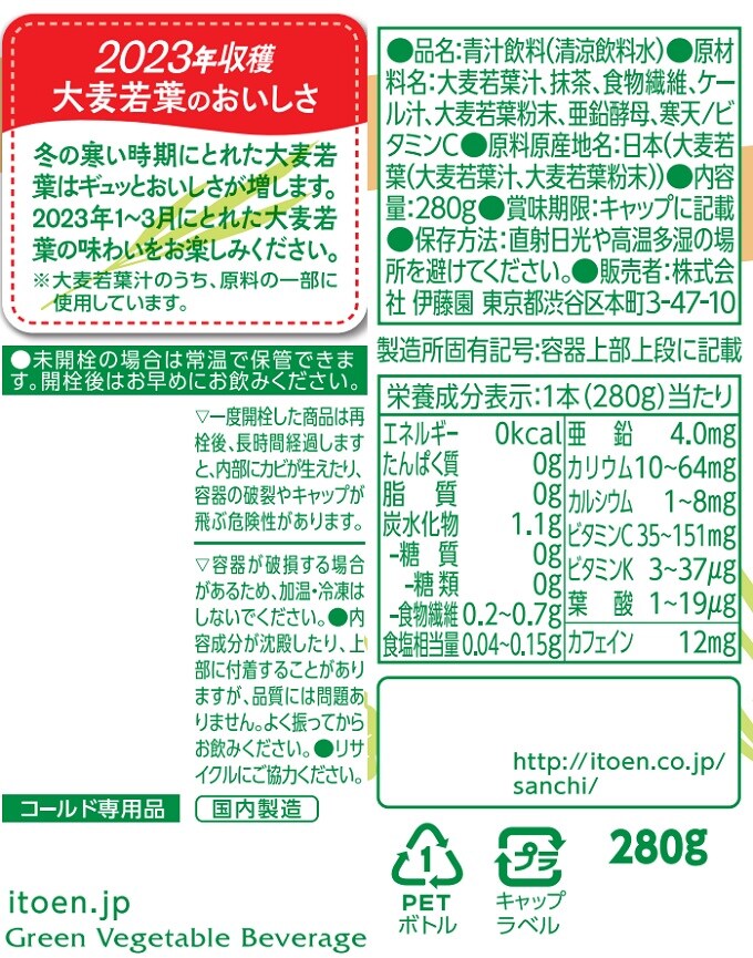 - ごくごく飲める 毎日1杯の青汁 PET 280g