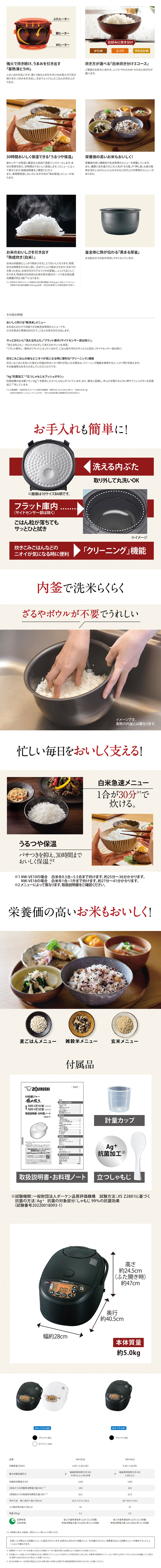[~1升炊き/ブラック] 象印/極め炊き IH炊飯ジャー (黒まる厚釜)|お米のおいしさを引き出す「熟成炊き(白米)」熟成炊きは時間をかけ水に浸し、芯までじっくり吸水!忙しい毎日をおいしく支える。