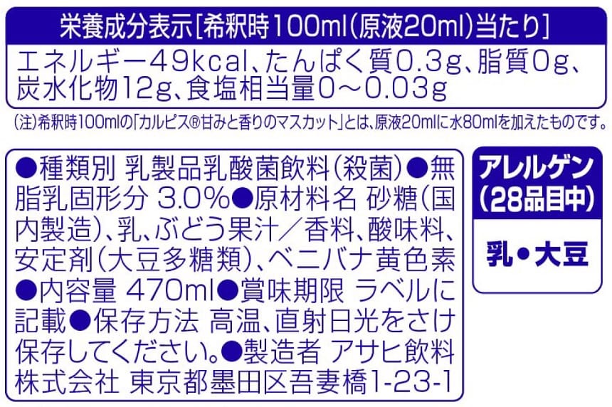マスカットの甘みと香りが楽しめるカルピスⓇの爽やかな甘ずっぱさで大人も子供も満足できる味わいです。