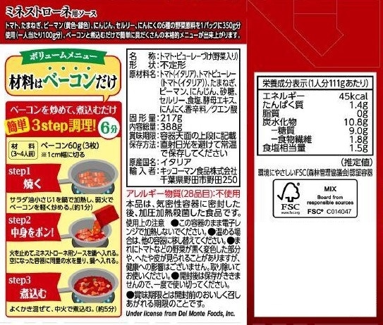 - デルモンテ 具Tanto ミネストローネ用ソース 388g