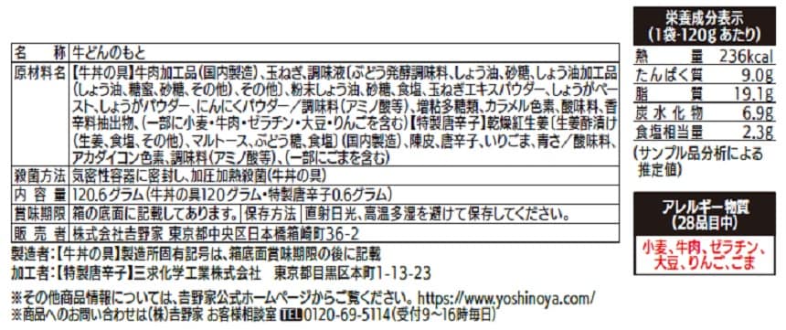 (1)吉野家の味をそのままに、常温保存可能な牛丼の具。