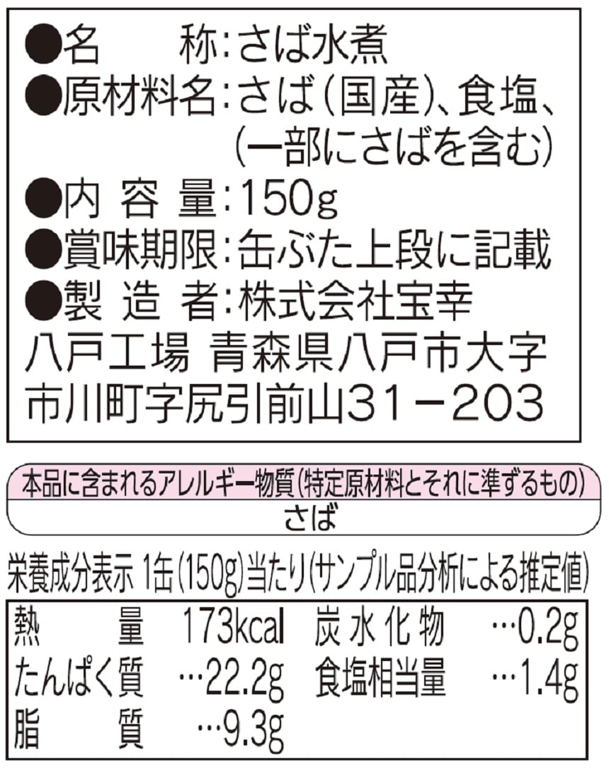 - 宝幸 国内産さば缶(さば水煮 150g / さば味噌煮 150g / さば味付 150g)