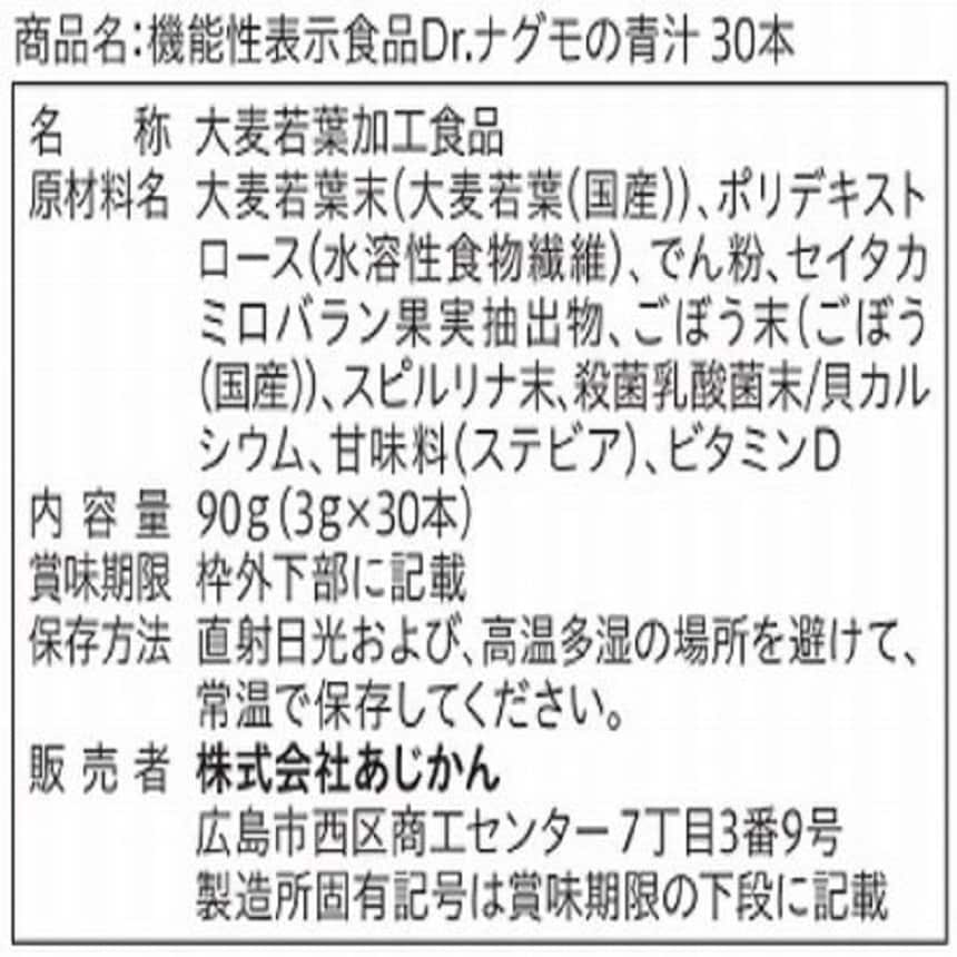 - 【機能性表示食品】Dr.ナグモの青汁 3g×30本