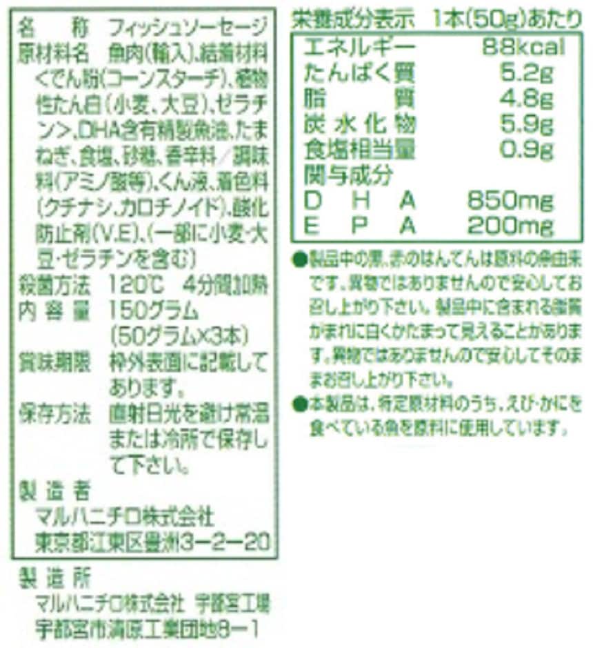 - 【特定保健用食品】DHA入りリサーラソーセージ 150g(50g×3本)