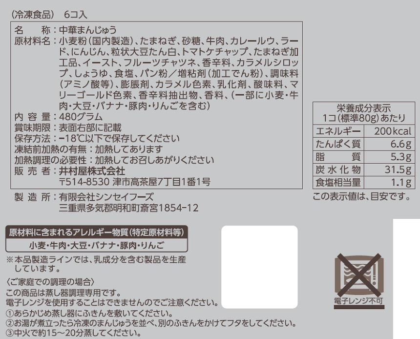 - 井村屋 カレーまん 480g(80g×6個入) / ピザまん 480g(80g×6個入)