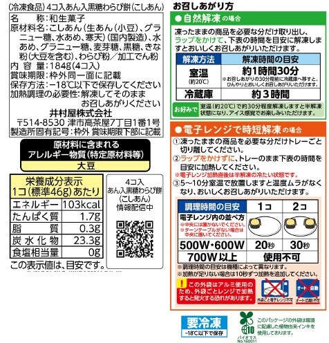 ・あん入黒糖わらび餅(こしあん) 184g(4コ入)×12袋