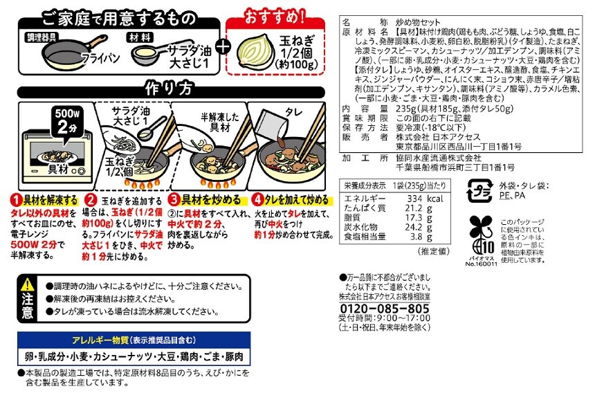 [30袋]日本アクセス ストックキッチン 鶏のカシューナッツ炒めキット 235g | オイスターソースのうま味と、カシュ―ナッツが香ばしい、鶏肉と相性抜群な中華メニュー。