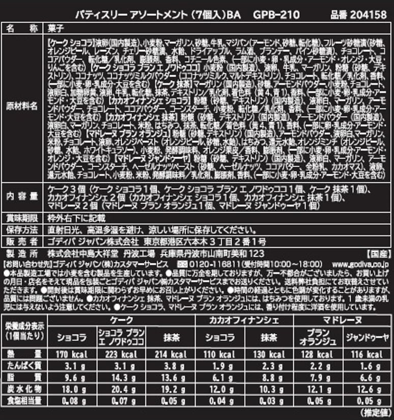 [3箱]ゴディバジャパン パティスリー アソートメント 7個入 | ベルギー産チョコレートを使用してショコラティエが生み出した焼き菓子の詰め合わせ。