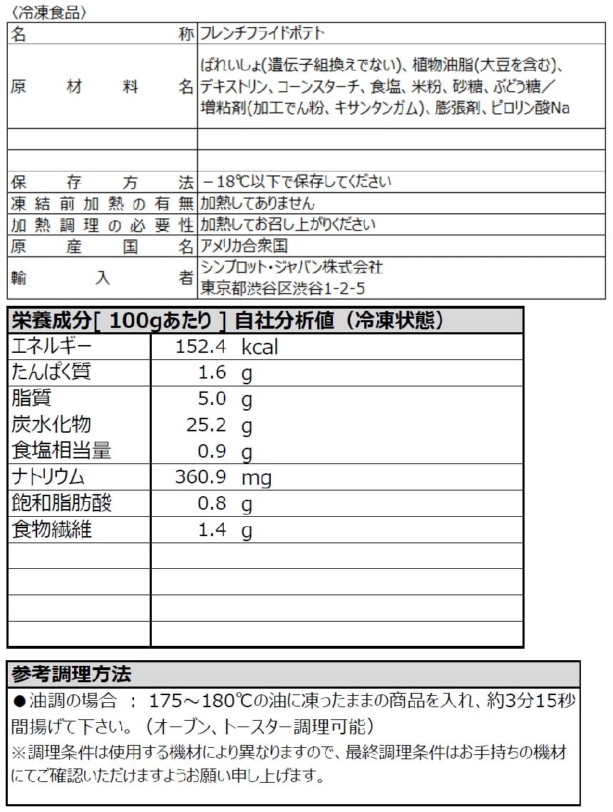 原料は米国産じゃがいもを使用。