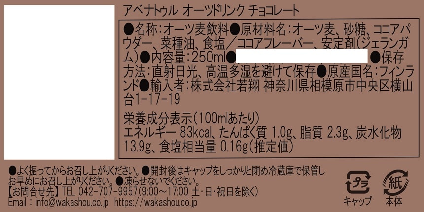 - ・アベナトゥル オーツドリンク チョコレート 250ml×15本