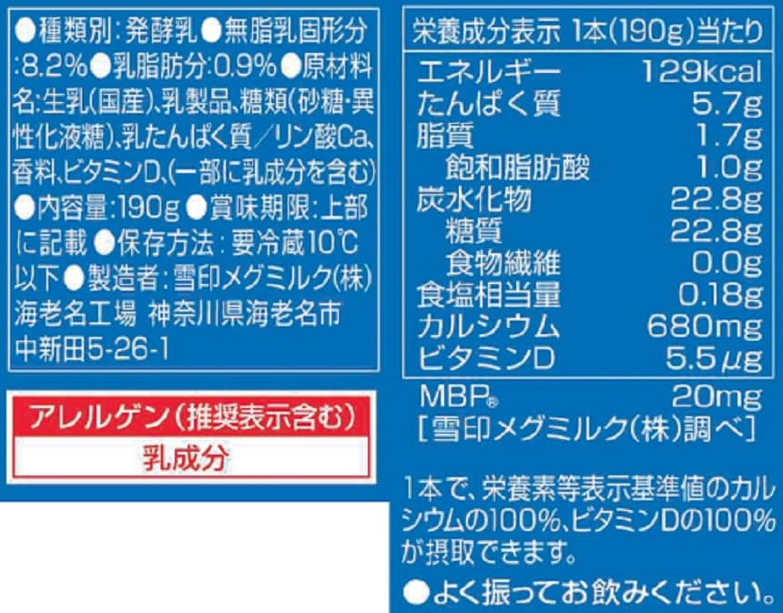 - [冷蔵]雪印メグミルク 毎日骨太MBP 1日分のカルシウムのむヨーグルト 190g×5本