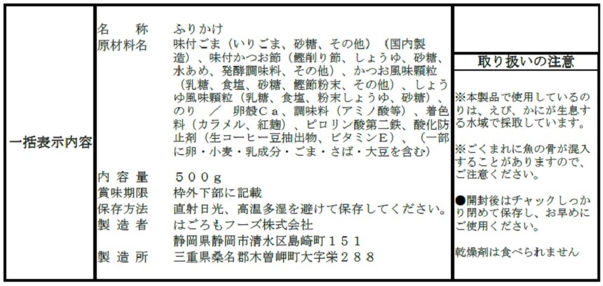 甘めに味付けしたザクザク食感の味かつおたっぷりの風味豊かなふりかけです。
