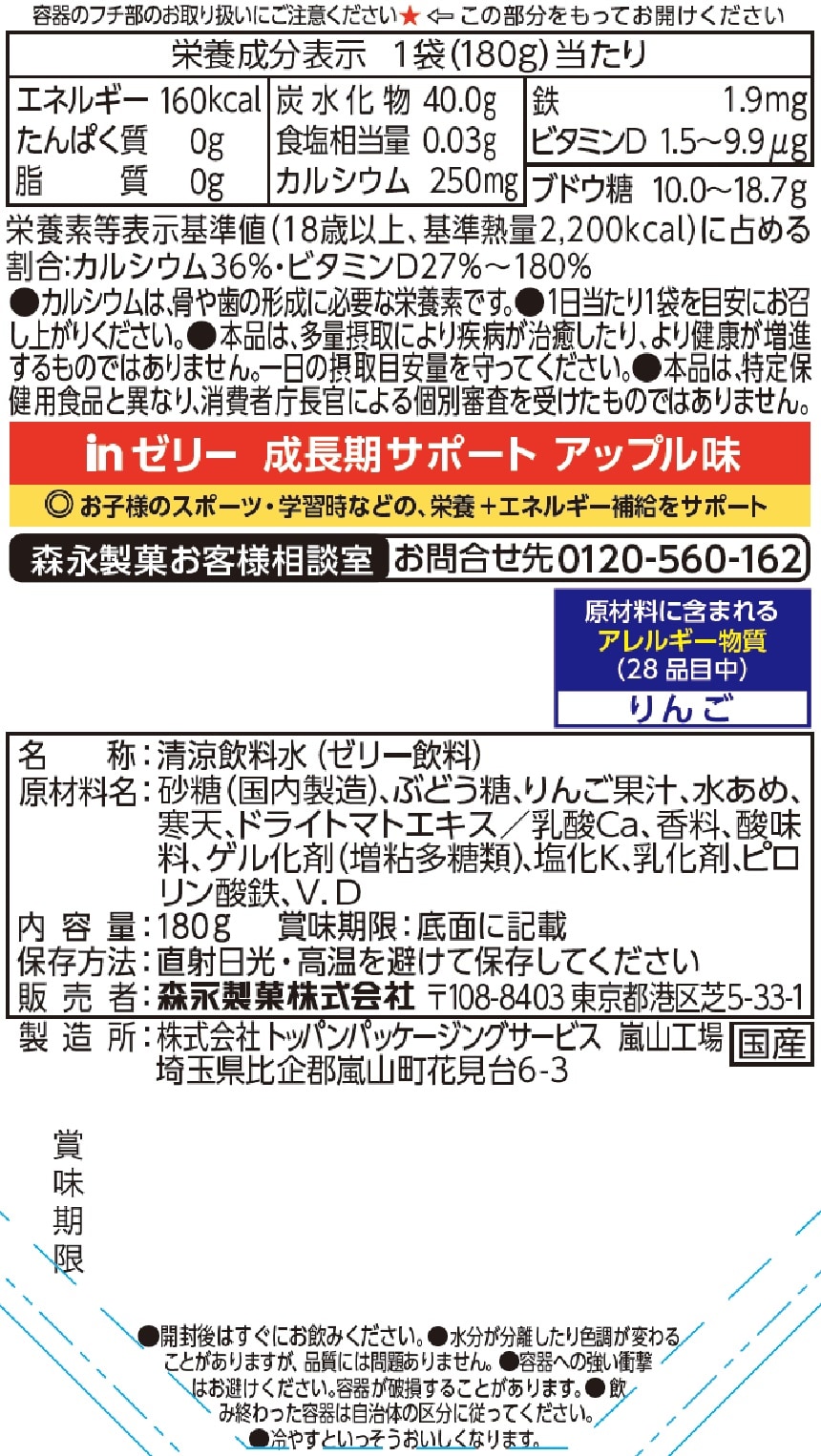 - inゼリー成長期サポート <アップル> 180g