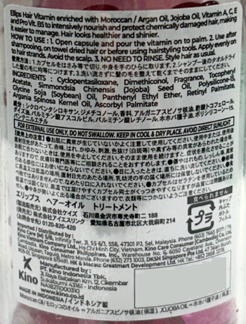 使用方法:洗髪後、髪をタオルで拭いた後カプセルをねじり、本品を手に取り髪全体に塗布します。(洗い流しません) よく馴染ませたらドライヤーか自然乾燥で乾かしてください。