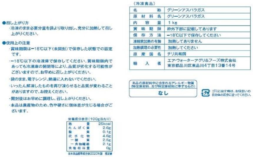 - グリーンアスパラカット 1000g