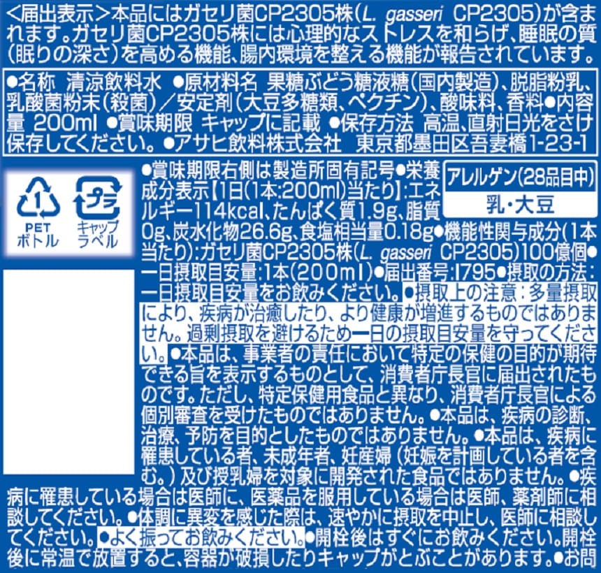 - 【機能性表示食品】「PLUSカルピスⓇ 睡眠・腸活ケア」PET 200ml