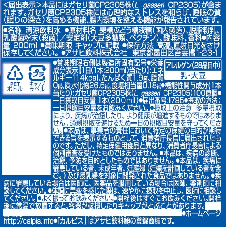 - 【機能性表示食品】「PLUSカルピスⓇ 睡眠・腸活ケア」PET 200ml