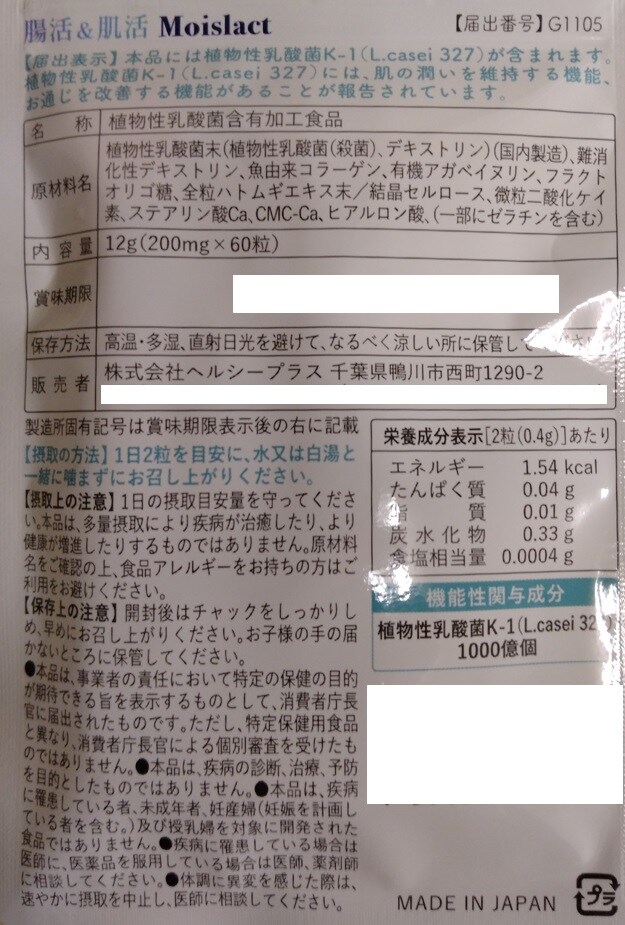 - 【機能性表示食品】腸活&肌活 Moislact(モイスラクト) 60粒入