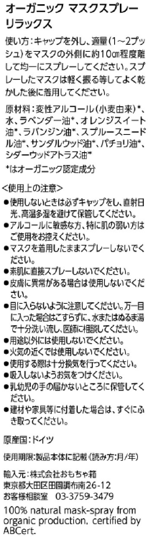 - ・ノイモンド オーガニックマスクスプレー リラックス 20ml×2本