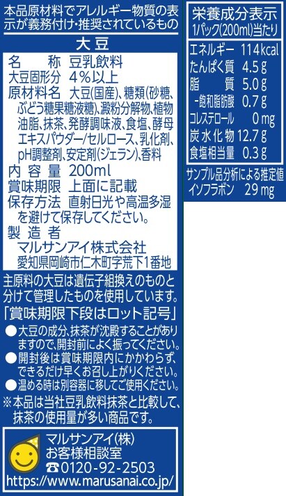 - ひとつ上の豆乳 豆乳飲料 抹茶 200ml