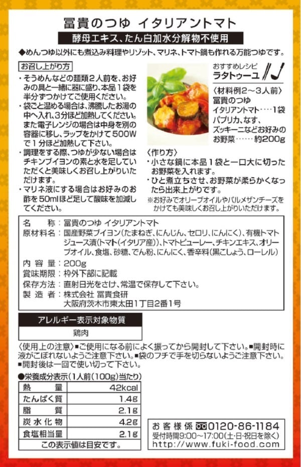 - ・冨貴のつゆ(イタリアントマト) 200g×10袋