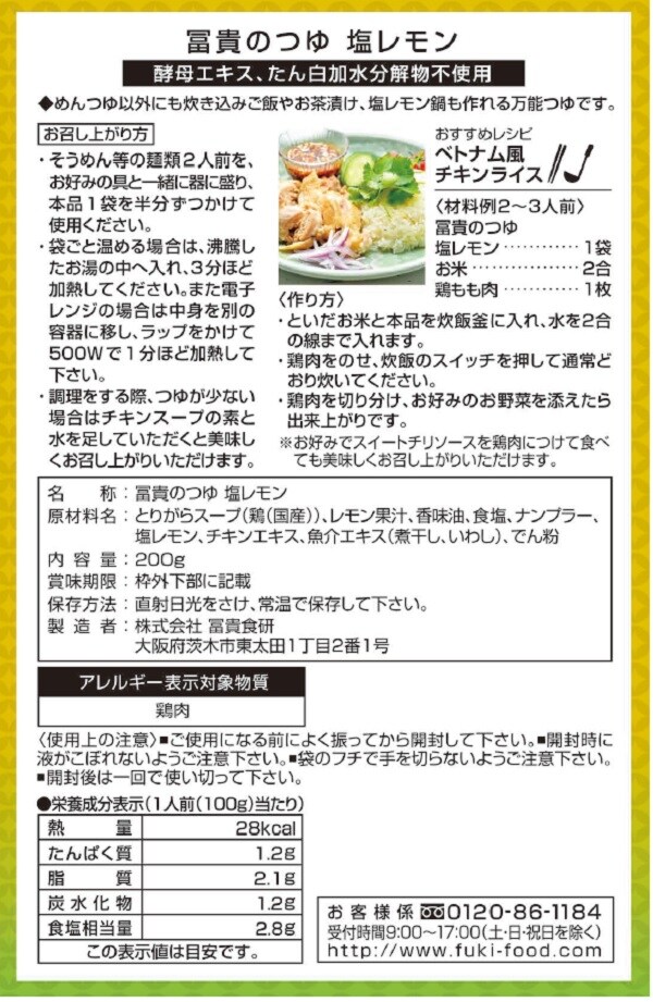 ・冨貴のつゆ(塩レモン) 200g×10袋