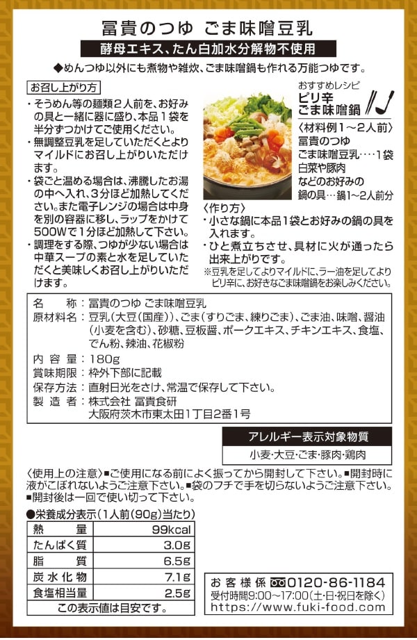 【冨貴のつゆ(ごま味噌豆乳) 180g】