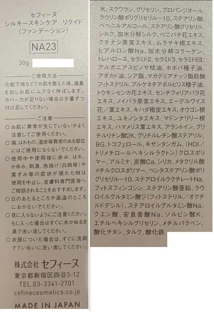 - セフィーヌ シルキースキンケア リクイド NA23 30g