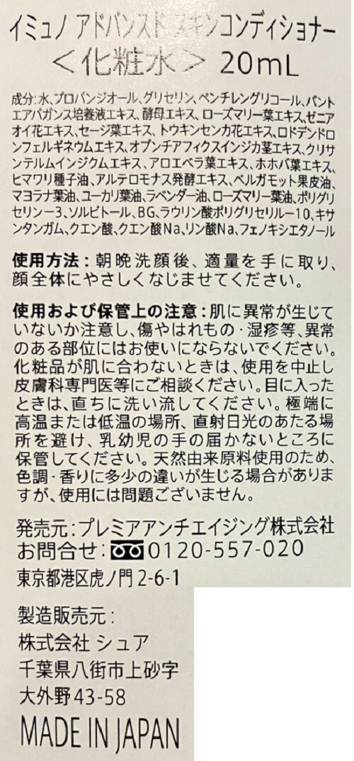 ●イミュノ アドバンスド スキンコンディショナー 20ml×2個