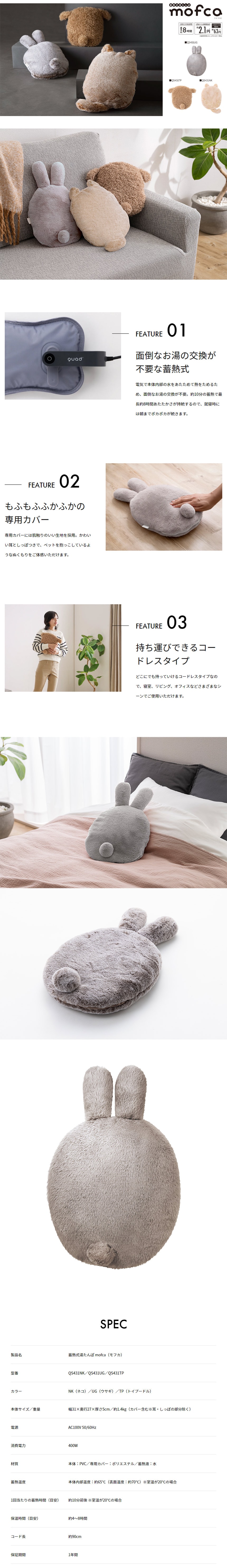 - [ウサギ] QUADS(クワッズ)/蓄熱式湯たんぽ mofca(モフカ)/QS431UG