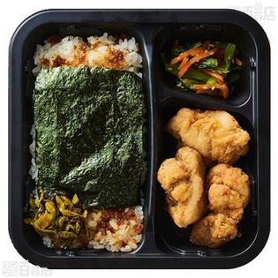 唐揚げと海苔弁当の最強コンビで手軽に食べれるのが便利です。また、美味しいです!