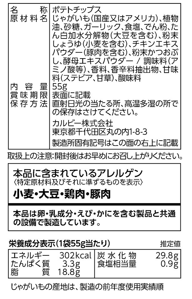 - ポテトチップス 濃厚キングとまらんガーリック 55g